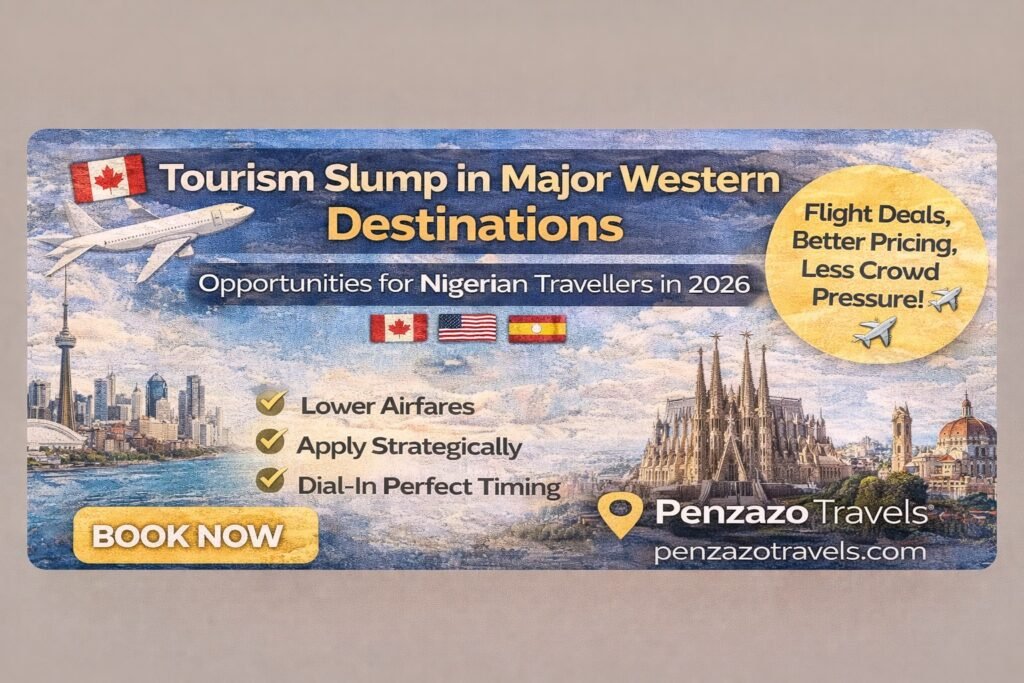What the 2026 Slowdown in Canada, U.S., Spain & Others Means for Nigerian Travellers Something interesting is happening in 2026. Major destinations like Canada, the United States, Spain, and parts of Western Europe are recording a measurable dip in visitor demand. Fewer arrivals. Softer bookings. Slower tourism growth. At first glance, it sounds negative. But […]